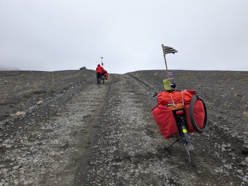 Les Hautes Terres, c'est la partie centrale de l'Islande. Une région inhospitalière, désertique, inhabitée et minérale. Entre volcans, glaciers, montagnes et hauts plateaux, quelques pistes ouvertes seulement de mi-juin à mi-septembre permettent de découvrir des paysages incroyables. Parmi les 4*4 et les motos tout-terrain, voilà Coco et Lolo sur leurs petits vélos !